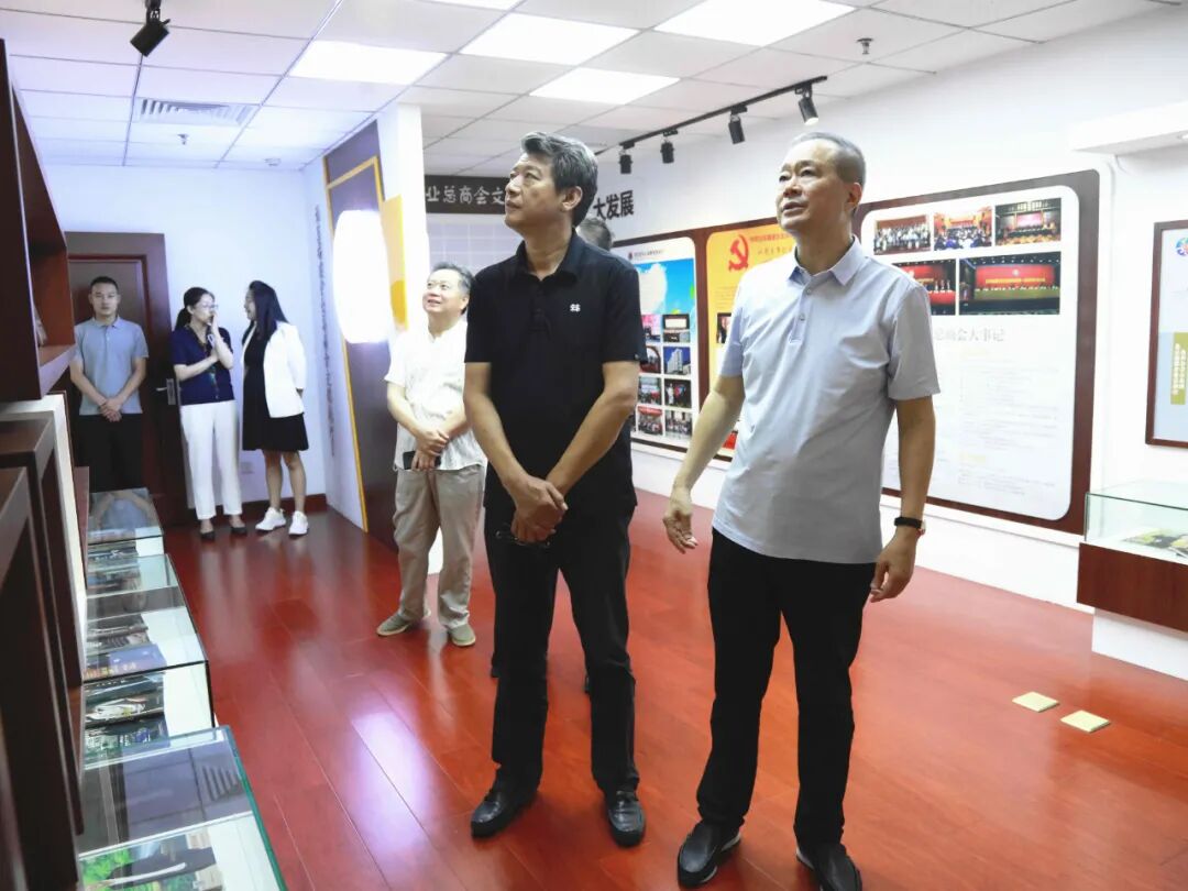 在陈春玖会长的陪同下,赵玉金书记一行参观了总商会办公区、党建活动室、文化展列室和北京京华公益事业基金会的办公场所。