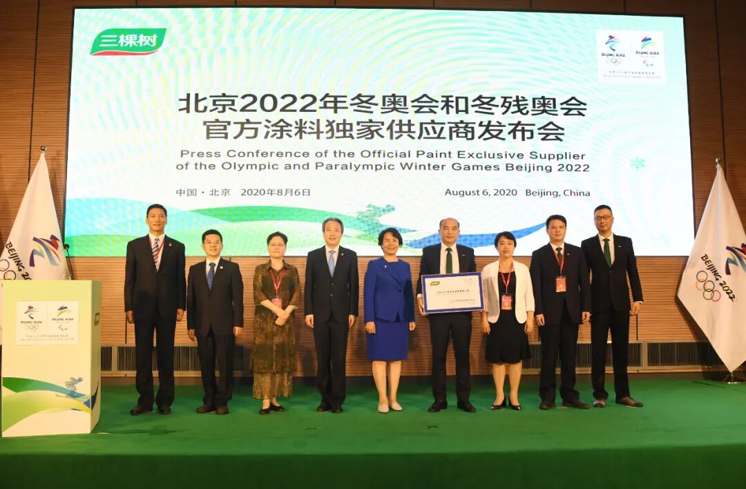 2020年8月6日,北京2022年冬奥会和冬残奥会官方涂料独家供应商发布会在北京冬奥组委园区举行。三棵树涂料股份有限公司正式成为北京2022年冬奥会和冬残奥会官方涂料独家供应商。